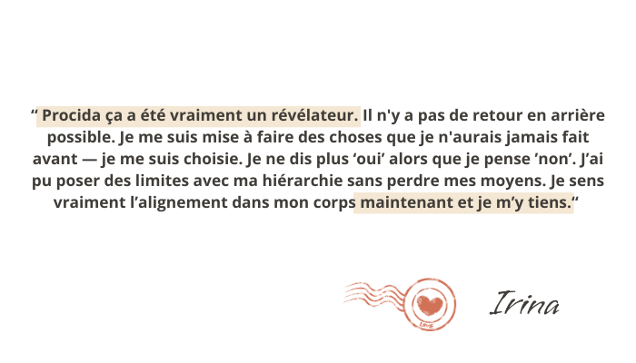 Tu ne t’échappes pas de ta vie, ce n’est ni une fugue, ni une fuite. C’est un espace pour ressentir et comprendre comment répondre avec plus de justesse à ta vie, depuis un endroit plus stable à l’intérieur.